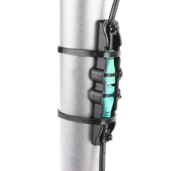 This plastic cable clamp for GDS mUSB and USB Type-C cables secures the connection between the GDS vehicle docks pigtail connector and the GDS charger. Four small zip ties can be attached around the connection to ensure cables cannot be unplugged. Additionally, two long zip ties are included with the clamp for mounting to the back of a GDS Dock or the RAM Tele-Pole for vehicle bases. These long zip ties allow for attachment on rails up to 1.5 in diameter. Always Protected. Always Connected.