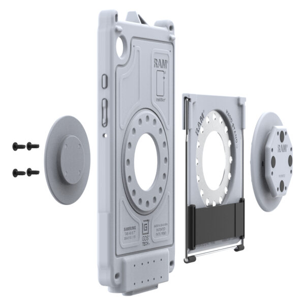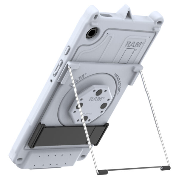 The GDS Hand-Stand with Uni-Conn Adapter – Gray (RAM-GDS-U1HSKU-GRY) is a two-in-one accessory that makes select IntelliSkin models compatible with the revolutionary Uni-Conn docking platform with an integrated stand. The integrated kickstand allows for positioning the tablet on a flat surface for on-the-go operation of your tablet. Easily install the adapter before inserting your device into the sleeve. The Uni-Conn docking platform makes docking and undocking with one hand easy, and when the time comes to upgrade devices in your fleet, a new IntelliSkin is all that’s needed. The light gray aesthetic is ideal for sophisticated, bright workplaces in industries such as retail, medical, and more. This adapter is backed by a lifetime warranty. One Dock to Connect Them All. Always Protected. Always Connected.