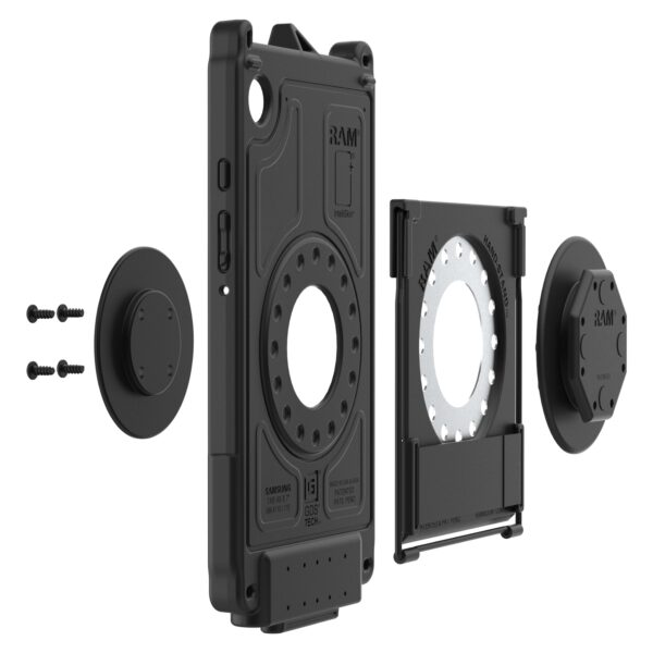 The GDS Hand-Stand with Uni-Conn Adapter (RAM-GDS-U1HSKU) is a two-in-one accessory that makes select IntelliSkin models compatible with the revolutionary Uni-Conn docking platform with an integrated stand. The integrated kickstand allows for positioning the tablet on a flat surface for on-the-go operation of your tablet. Easily install the adapter before inserting your device into the sleeve. The Uni-Conn docking platform makes docking and undocking with one hand easy, and when the time comes to upgrade devices in your fleet, a new IntelliSkin is all that’s needed. This adapter is backed by a lifetime warranty. One Dock to Connect Them All. Always Protected. Always Connected.