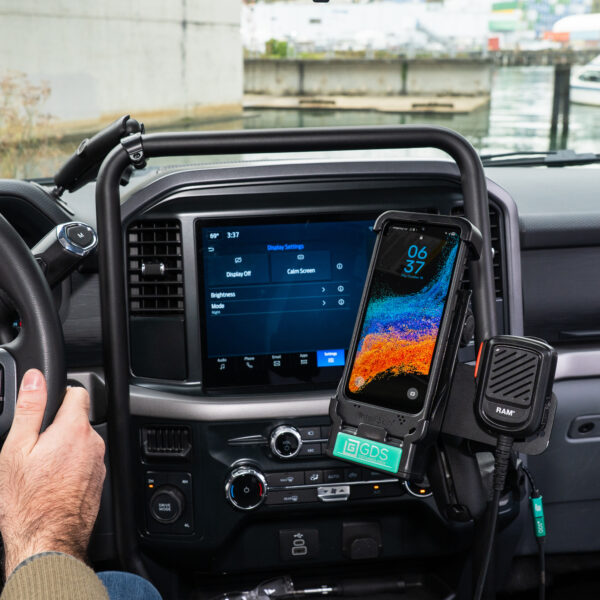The GDS PTT Speaker Mic Kit for XCover7 Pro/6 Pro – ESChat & Zello (RAM-GDS-DOCK-V15-SAM84-RSM4) delivers a complete solution for enabling reliable Push-to-Talk over Cellular (PoC) communication. Built specifically with the rugged Samsung XCover6 Pro in mind, this kit includes a form-fit GDS Dock, drill-down base with backing plate, microphone bracket, microphone clip, and a rugged USB-C Remote Speaker Microphone (RSM). The RSM provides dependable push-to-talk functionality through a USB-C connection, optimized for ESChat and Zello applications.