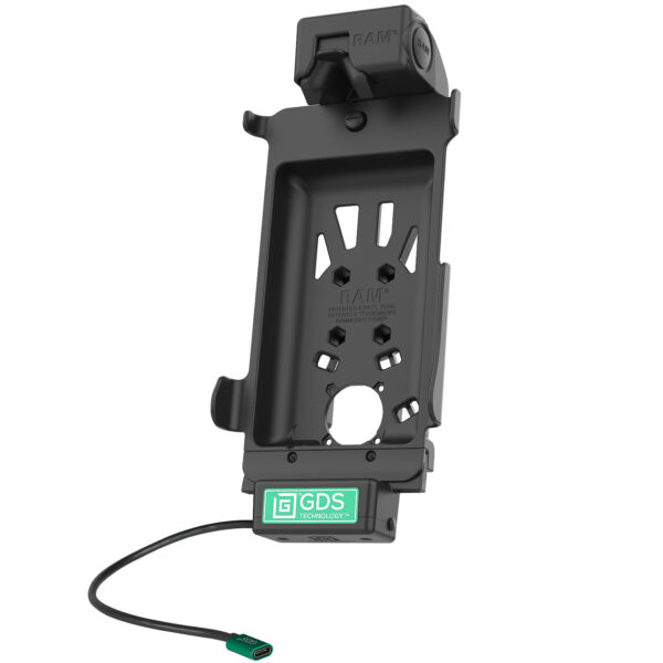 The GDS Tough-Dock is the newest vehicle dock in the GDS Tech line of vehicle docks designed to support the Samsung Galaxy Tab Active5, Tab Active3 and 2 in an IntelliSkin Next Gen protective sleeve for your fleet. Using a USB Type-C power connector, the GDS Tough-Dock supports high speed charging capabilities for the Samsung Galaxy Tab Active5, 3 and 2. The GDS Tough-Dock is compatible with RAM ball and socket systems and requires a 4-hole AMPS pattern ball adapter. The GDS Tough-Dock is backed by a 3-year warranty. Always Protected. Always Connected.