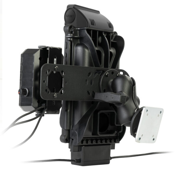 The GDS Tough-Dock Universal PTT Vehicle Bundle for Tab A7 Lite 8.7″ (RAM-GDS-101B2-SAM80-PTT1U) is a vehicle dock designed to support the Samsung Galaxy Tab A7 Lite 8.7″ in an IntelliSkin Next Gen protective sleeve and provide push-to-talk capabilities, ideal for fleets of vehicles. The GDS Tough-Dock uses a USB Type-C power connector to support high speed charging capabilities for the Tab A7 Lite and a single USB Type-A peripheral connector for the RAM microphone. This turnkey solution includes the GDS Tough-Dock, IntelliSkin Next Gen for Samsung Tab A7 Lite 8.7″, GDS Modular 10-30V Hardwire Charger, C Size double ball mount with short arm, backing plate adapter, bracket adapter, audio adapter cable (3.5mm to USB Type-A), GDS Audio amplified speaker, RAM microphone, and cable clamps. The GDS Tough-Dock is backed by a 3-year warranty. Always Protected. Always Connected.