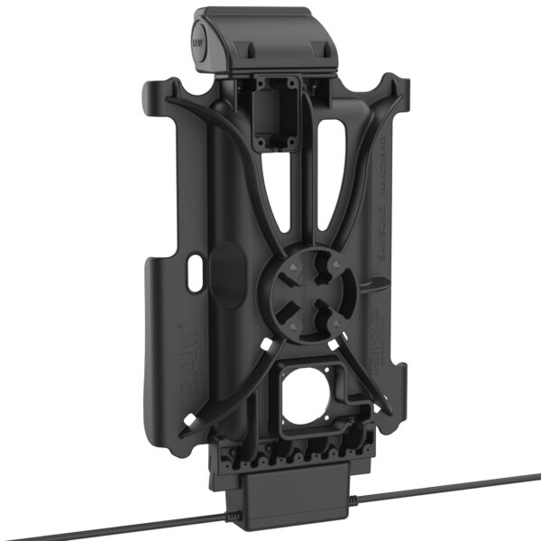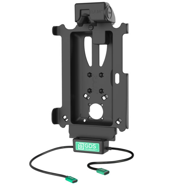 The GDS Tough-Dock + USB-C Data for Tab Active4 Pro & Tab Active Pro (RAM-GDS-DOCK-SAM54NC-CU) is a vehicle dock designed to support the Samsung Galaxy Tab Active4 Pro and Tab Active Pro wrapped in an IntelliSkin Next Gen protective sleeve. Using a USB Type-C power connector, the GDS Tough-Dock supports high speed charging capabilities required by the Samsung devices. It also features an additional USB Type-C connector to support a single peripheral device. The USB Type-C connection work seamlessly with Klein Electronics technology to enable push-to-talk (PTT) over-cellular capabilities. The GDS Tough-Dock is designed with housing that accomodates the RAM NFC Extender, is compatible with RAM ball and socket systems, and requires a 4-hole AMPS pattern ball base. The GDS Tough-Dock is backed by a 3-year warranty. Always Protected. Always Connected.