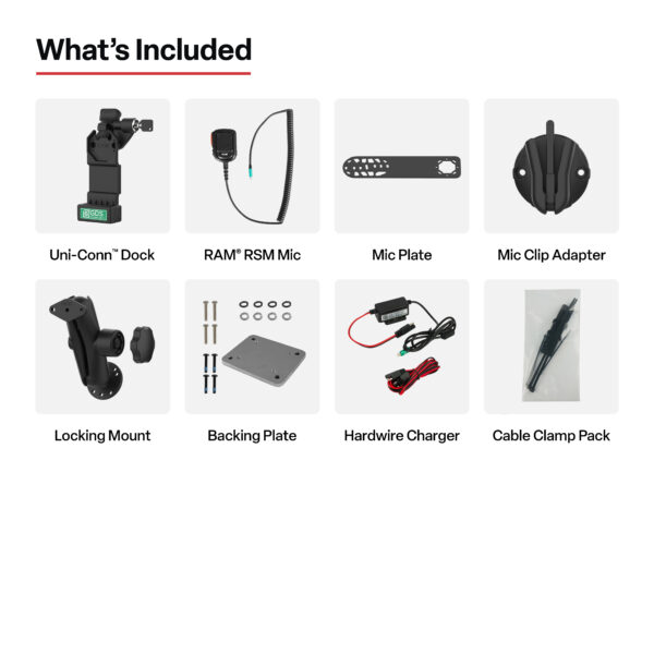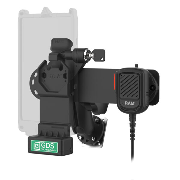 The GDS Uni-Conn Locking PTT Remote Speaker Mic Bundle for ESChat & Zello (RAM-GDS-U1RL-RSM-A04) delivers everything you need to enable reliable Push-to-Talk over Cellular (PoC) in your fleet. This bundle does not include an IntelliSkin, ideal for organizations already using IntelliSkin device sleeves or deploying a mixed-device fleet within the GDS Ecosystem. It includes the universal Uni-Conn dock, drill-down base with backing plate, microphone bracket, microphone clip, and a rugged USB-C Remote Speaker Microphone (RSM). Compatible with ESChat and Zello, the RSM ensures clear, instant communication for fleets, first responders, logistics teams, and mobile workforces. And with locking knobs for theft deterrence, your hardware stays protected in the field.