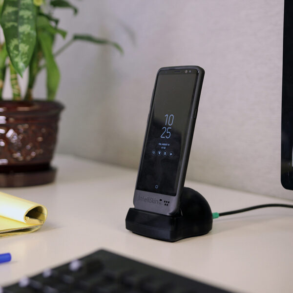 IntelliSkin is a protective sleeve featuring GDS Technology for the Samsung Galaxy S8+ featuring military grade drop protection for accidental drops and scratches. The IntelliSkins integrated GDS connector is molded directly into the skin, preventing damage to your devices USB Type-C charging port from repetitious docking. Eighteen molded ruggedized docking contacts on the exterior of the skin are also designed for repetitive docking in field applications. The IntelliSkin is compatible with a variety of USB Type-C GDS Docks with a USB Type-C charger, allowing for charging and data syncing. Always Protected. Always Connected.