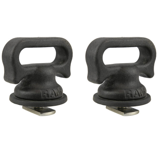 As a pack of two, the RAM Vertical Track Tie Down system features a T-Bolt and provides an anchor point for use with a track mounting system, allowing you to secure coolers and other accessories to your kayak. Each tie down is designed to work with 1 and 1.5 flat webbing, as well as ropes and bungee cords up to 3/8. Compatible with all versions of the RAM Tough-Track.