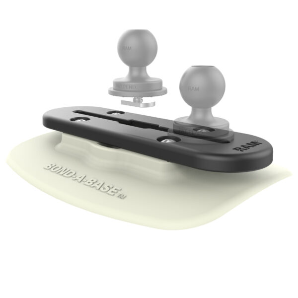 Add a reliable and secure track mounting system to your inflatable boat or stand up paddleboard with the RAM Bond-A-Base with Tough-Track. Easily install with the included 3M VHB double-sided adhesive pad that connects the Bond-A-Base to your watercraft. The Bond-A-Base holds the composite Tough-Track with an overall length of 7.25, allowing you to mount your favorite devices action cameras, fishfinders, phones, rod holders and more using compatible RAM track bases.