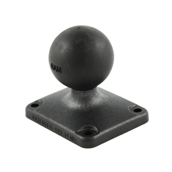 The RAP-202U-225 consists of a 1.5″ diameter rubber ball connected at right angles to a 2″ x 2.5″ rectangular base. This mount has pre-drilled holes at each corner of the base plate.