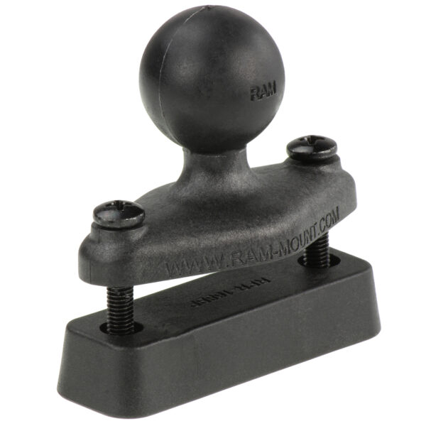 The RAP-B-238-BU consists of a 1″ diameter rubber ball connected at right angles to a 2.43″ x 1.31″ diamond base. The base has two holes 1.912″ from center to center, matching diagonally with the industry standard 4-Hole AMPS hole pattern. Included with this base is a highstrength composite backing plate, connected with stainless steel screws and nuts for reinforcing any flat surface that the ball is mounted against.
