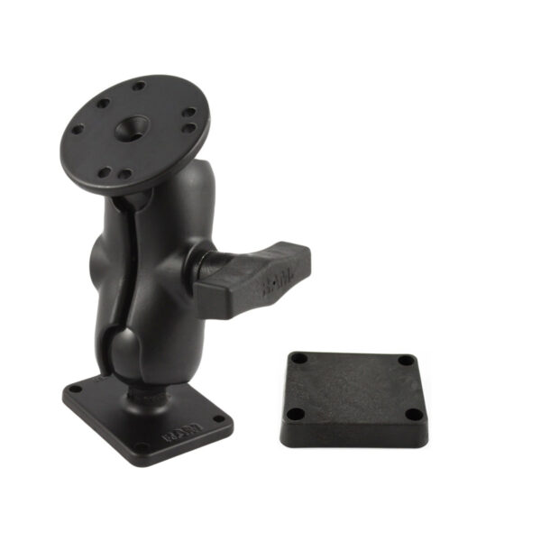 The RAM-101-B-SAE1P consists of a 3.56″ double socket arm, 2.5″ diameter round base with the universal AMPS hole pattern, 2″ x 2.5″ rectangular base that has pre-drilled holes at each corner of the base plate and composite backer plate. Designed into the mount is a 1.5″ diameter patented rubber ball and socket system with adjustment points at both socket ends of the arm. Rubber ball and socket technology allows for almost infinite adjustment and perfect viewing angles. This kit also comes with a backing plate.