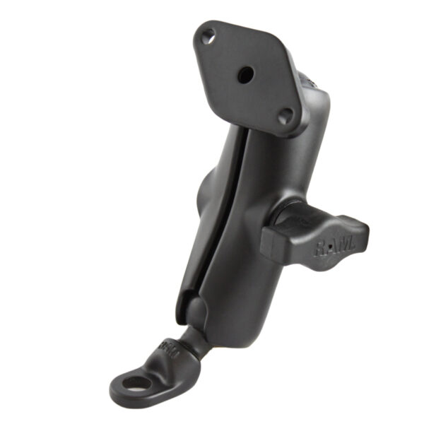 The RAM-B-180U consists of a 1″ diameter ball base with 9mm hole, double socket arm and diamond base adapter. This mount is often used on motorcycles, attaching to the mirror frame, most commonly found on BMW motorcycles. The 2.43″ x 1.31″ diamond base contains two holes 1.912″ from center to center, matches the industry standard AMPS hole pattern and will connect to a large variety of RAM Mount and third party cradles. The mount is designed with a RAM 1″ diameter patented rubber ball and socket system that has adjustment points at both ends of the double socket arm; this allowing for almost infinite adjustment and perfect viewing angles.