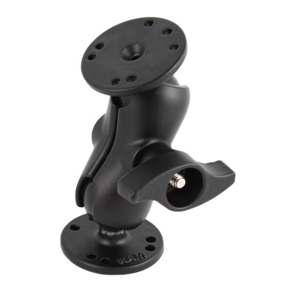 The RAM-101MU-B consists of a 3 inch double socket arm with metal knob and two 2.5″ diameter round bases with the universal AMPS hole pattern. Designed into the mount is a 1.5″ diameter patented rubber ball and socket system with adjustment points at both socket ends of the arm. Rubber ball and socket technology allows for almost infinite adjustment and perfect viewing angles. High quality materials insure your device is safe, secure, and within easy reach. RAMs patented design also dampens shock and vibration helping to extend the life of your device.