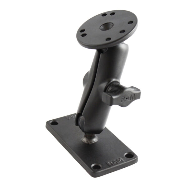The RAM-B-101-24U consists of a medium length B-size arm with a 2.5″ diameter round plate with universal AMPS hole pattern and a 2″ x4″ rectangular plate.