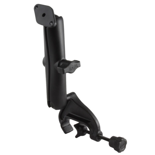 The RAM-B-121-C-238U consists of a yoke clamp base, LONG length double socket arm and 2.43″ x 1.31″ diamond base. The yoke clamp base will fit rails in diameter from 0.625″ to a maximum of 1.25″. The 1″ rubber ball is at a right angle to the plane of the mount; when connected to a rail, the ball sits parallel to the rail. The diamond base has two holes 1.912″ from center to center, matches the industry standard AMPS hole pattern and will connect to a large variety of RAM Mount and third party cradles. The mount is designed with a RAM 1″ diameter patented rubber ball and socket system that has adjustment points at both ends of the double socket arm, allowing for almost infinite adjustment and perfect viewing angles.