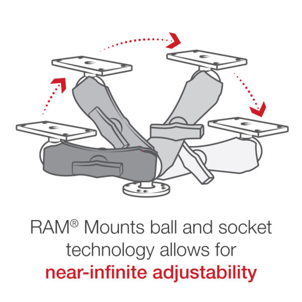 The RAM-202-24-202U powder-coated, marine-grade aluminum Humminbird Helix 7 mount consists of a medium length double socket arm, a 2.5″ diameter round base with a 1.5″ C size ball, and one 1.5″ x 3.5″ rectangular plate with a 1.5″ C size ball. The 1.5″ x 3.5″ rectangular plate contains a 4-hole pattern. Rubber ball and socket technology provides shock and vibration damping, and allows for near-infinite adjustability so you can position your device at the perfect viewing angle. Compatible with the Humminbird Helix 7.