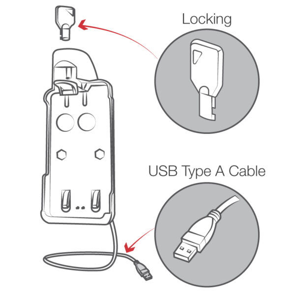 The RAM EZ-Roll’r Powered Key Locking Cradle for Sonim XP8 secures your device in a form-fit holder while keeping the entire screen and buttons visible and accessible. This powered cradle features two integrated pogo pins that provide charging capabilities to the device through male USB Type-A connector, and includes key lock for extra security and peace of mind. Single-handed operation makes it easy to dock and remove the Sonim XP8simply lift the top lever and pull out the device, or place bottom portion of the device in first and push in to lock in place. Compatible with RAM two-hole AMPS pattern bases and RAM microphone brackets, this RAM form-fit cradle easily connects to B and C size ball mounts for use in a wide variety of applications.
