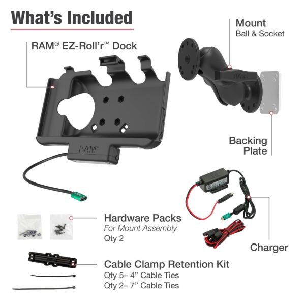 - RAM® EZ-Roll'r™ Powered form-fit cradle provides charging capabilities for the Samsung Galaxy Tab Active5, Tab Active3 and 2 through integrated pogo pin connector and USB-C cable