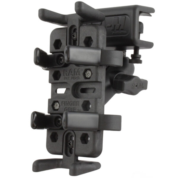 The RAM-B-177-UN4 consists of a glare shield clamp base, double socket arm and universal Finger Grip cradle. Simply locate the clamp on any clamping surface up to 5/8″ thick and gently snug the nylon thumb screws. The double ball & socket system will provide perfect viewing angles to get the most from your electronic device. The RAM glare shield clamp with double ball & socket system is far and away the most discrete and clean way to mount most any compact electronic device to the glare shield of your aircraft.