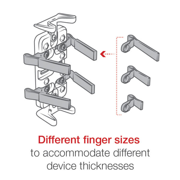 | Holder Dimensions | Height Range: 7.25" max (using optional supports), Max Depth: 1.5", Width Range: 1.25" – 3.5" |
