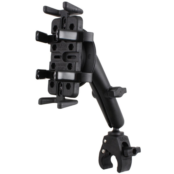 This mount comes with a long arm and our Roto-View so you can rotate your device without moving your mounts viewing angle. The Universal finger grip cradle can accommodate most devices from phones to portable radios. The RAM tough claw allows you to attach your mount to most anything you can get the jaws around. This mount is great for devices that have portrait and landscape views.