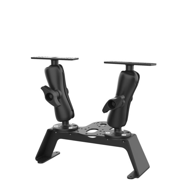 The RAM Fishfinder Deck Kit with Dual Marine Electronic Mount (RAM-FF1-D-115-2) is a robust, powder-coated aluminum bracket configured with two D size fishfinder mounts that allows you to mount two fishfinders side-by-side. Whether you’re trolling deep waters or scanning shallow coves, this heavy-duty mount helps you take in more data for smarter navigation and better results. Built for versatility, the Deck Mount features a wide array of pre-drilled hole patterns, making it compatible with popular fishfinder brands like Garmin, Lowrance, and Humminbird. It also includes three sets of 4-hole AMPS patterns and three sets of tri-hole patterns for seamless integration with RAM Mounts D size bases. This solution comes with the RAM Foot Stabilizer for added support and stability in rough waters. Crafted from marine-grade aluminum, this fishfinder mounting bracket is corrosion-resistant and engineered to withstand harsh marine environmentslasting longer than your boat and standing up to the roughest conditions. In fact, we guarantee it with a Lifetime Warranty for all RAM components.