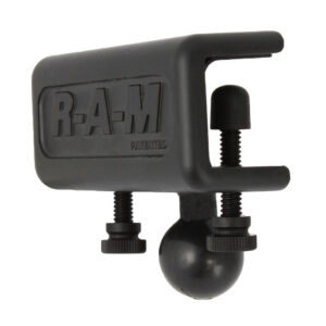 The RAM-B-127 consists of a medium length B-size double socket arm with a 2.5″ diameter round plate with universal AMPS hole patternand a removable 1/4″-20 threaded post on one side and a glare sheild clamp base on the other side. The glare sheild clamp base is suitable for the edges of glare shields or other sturdy surfaces up to .625″ thick.