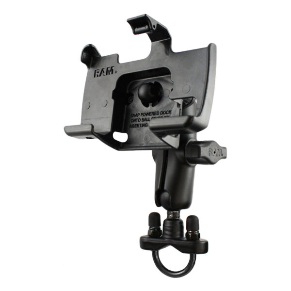 This motorcycle mount makes attaching to handlebars, tubing, or railing a breeze. Simple to install and easy to use, the possibilities become endless. The zinc coated metal u-bolt and nuts included are designed it fit motorcycle handlebars, or circular rail that are 0.75″ to 1.25″ in diameter. Rubber ball and socket technology allows for almost infinite adjustment and perfect viewing angles. High quality materials insure your GPS is safe, secure, and within easy reach. RAMs patented design also dampens shock and vibration helping to extend the life of your mobile device.