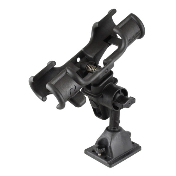 The RAP-370-D consists of the RAM ROD Light-Speed fishing rod holder, 4″ long spline post and deck track mounting base. Designed to mount horizontally in your boat, you can rotate the rod holder 360 degrees, while tilting the rod holder forward and back for the optimum fishing angle. The RAM ROD Light-Speed is another innovative product in RAMs long list of high quality, industry leading fishing products. Ideally suited for spinning reels and bait casting reels, the Light-Speed rod holder provides smooth action when inserting and removing the fishing rod, yet holds firm in rough water or while trolling. The spring loaded design enables rapid removal of the rod and reel when a fish is on, and offers easy placement of the rod in the rod holder.