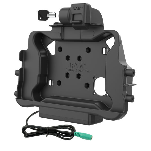 The RAM Locking Powered Dock for Honeywell ScanPal EDA10A (RAM-HOL-HON11PKLU) features a form-fit design specifically for the Honeywell ScanPal EDA10A tablet with the OEM protective boot. This powered holder allows you to keep the device charged through the pogo pin contacts when the device is dockedpower is provided by connecting to the dock’s 5.5mm DC power jack. It is compatible with the OEM hand-strap accessory and requires that the protective boot is installed for a secure fit. Take your solution a step further with a variety of compatible RAM accessories, such as the RAM NFC Extender and RAM Vent-Temp. This tablet holder includes a 4-hole AMPS and 75mm x 75mm VESA pattern on the back as connection points for attaching a double socket arm to complete your mounting solution. Secure any peripheral accessories or devices directly to the dock by mounting them to one of the two built-in 2-hole mounting locations compatible with the RAM 2-hole diamond base.