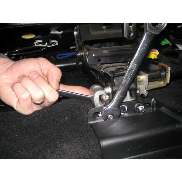 The RAM No-Drill laptop mounting base features a heavy-duty steel mounting base custom designed to fit this vehicle perfectly. Using the passenger side seat rail bolts as attachment points, existing hardware is used to secure the laptop mount base in the vehicle.