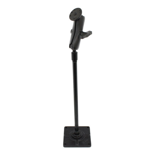 This kit comes with a 6″ x 6″ base with an industry-standard amps hole pattern, an 18 inch metal NPT pole, a six inch double socket arm with a 1.5 inch rubber ball and amps mounting plate on top.