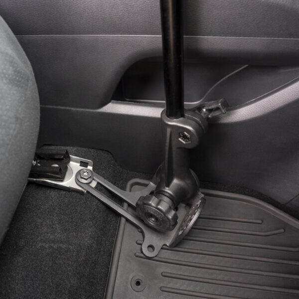 • Universal vehicle mount attaches to seat rail without any drilling necessary; ideal for tablets and small laptops