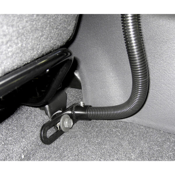 - Universal vehicle mount attaches to seat rail without any drilling necessary; 18" aluminum rod can be bent to your ideal position