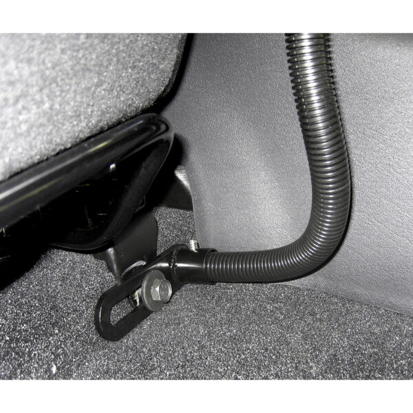 - Universal vehicle mount attaches to seat rail without any drilling necessary; 18" aluminum rod can be bent to your ideal position