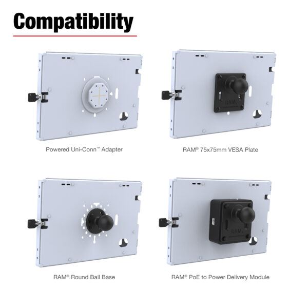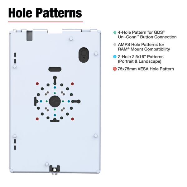 - Secure to RAM® ball mounts with VESA and AMPS pattern; or flush mount