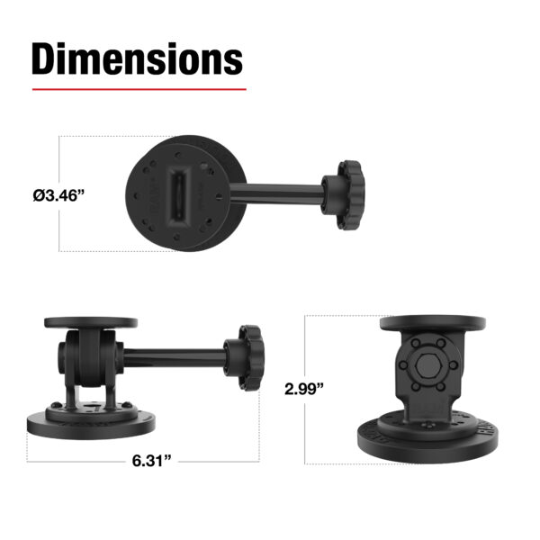 The RAM Single Pivot Magnetic Mount with Knob (RAP-101-PV4-MAG88U) is a low-profile, magnetic mounting solution. One end features both 2-hole and 4-hole AMPS patterns to easily install any RAM holder or GDS dock while the other end features the RAM Tough-Mag magnetic base. This solution uses tooth-lock washers to allow users to pivot their device up to 180-degrees and the extended knob makes it easy to adjust the viewing angle of your device. The RAM Tough-Mag base features 10 industrial-strength N52 grade magnets that magnetize to any ferrous metal surface and rubber coating that protects the metal surface you’re attaching to.