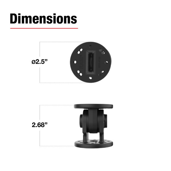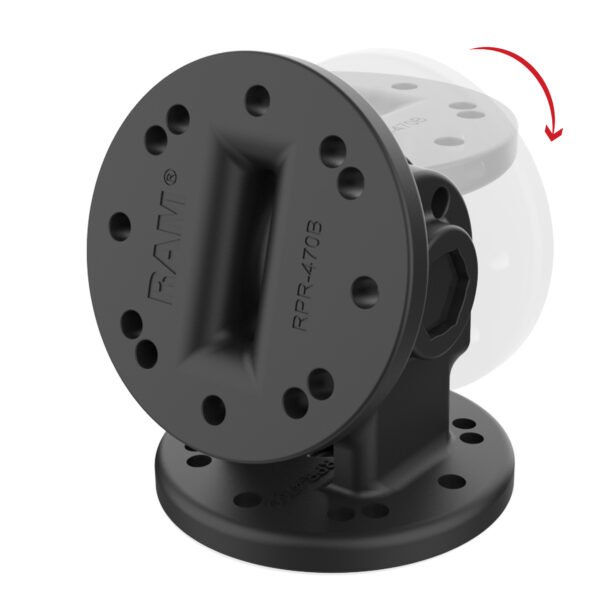 The RAM Single Pivot Mount (RAP-101-PV4-NKU) is a low-profile, drill-down mounting solution. Each end features 2-hole and 4-hole AMPS patterns to easily install any RAM holder or GDS dock and secure the mount to any surface. This solution uses tooth-lock washers to allow users to pivot their device up to 180-degrees and utilizes a barrel nut instead of traditional adjustment knobs to provide tamper resistance, ideal for high-traffic environments.