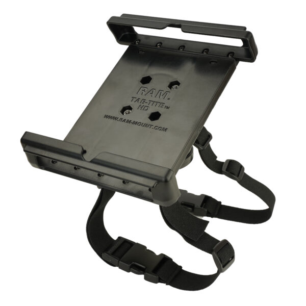 Get the most out of your tablet with the RAM Tab-Tite spring-loaded, quick-release holder with the RAM Snap-Link Rotating Kneeboard Mount. This holder will support nearly any 8″ tablet with a heavy duty case including the iPad mini (A17 Pro), mini 6 and all previous iPad mini models. This spring-loaded design makes it easy to insert and remove your tablet and keeps it secure while on the go. End cups are designed to optimize the functionality of your tablet, allowing access to audio jacks, USB, power, and other ports. For pilots who like to have the iPad on their knee during flight, this solution will keep your device secured whether viewing in portrait or landscape mode, with the optional RAM Snap-Link ball adapter that lets you angle your tablet to eliminate sun glare. Included is a set of four nuts and bolts to connect the cradle to any RAM mounting components that contain the universal AMPS hole pattern. The Tab-Tite cradle is compatible with any tablet that will fit the dimensions listed below. It is important to verify the dimensions of your tablet when determining the overall size.
