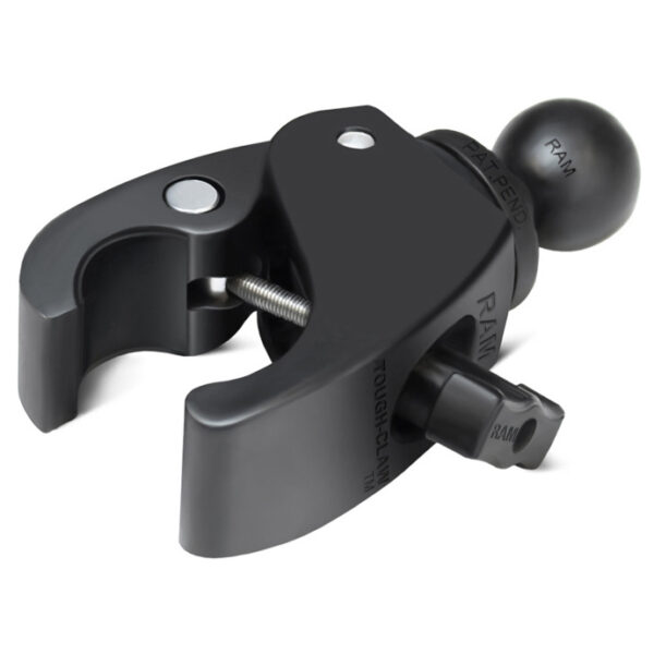 The RAP-B-400-238U consists of the small Tough-Claw base, composite double socket arm and diamond base adapter. The RAM Tough-Claw is the perfect mounting base for quick and easy tool-less installation and removal on round, square, odd shaped rails and bars. The Tough-Claw can be clamped on rails from 0.625″ – 1.14″ outer diameter. The diamond base adapter contains the industry standard universal 2-Hole AMPS hole pattern, which will connect to a large variety of RAM Mount and third party cradles. The mount is designed with a RAM 1″ diameter patented rubber ball and socket system that has adjustment points at both ends of the double socket arm; allowing for almost infinite adjustment and perfect viewing angles.