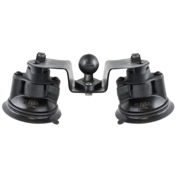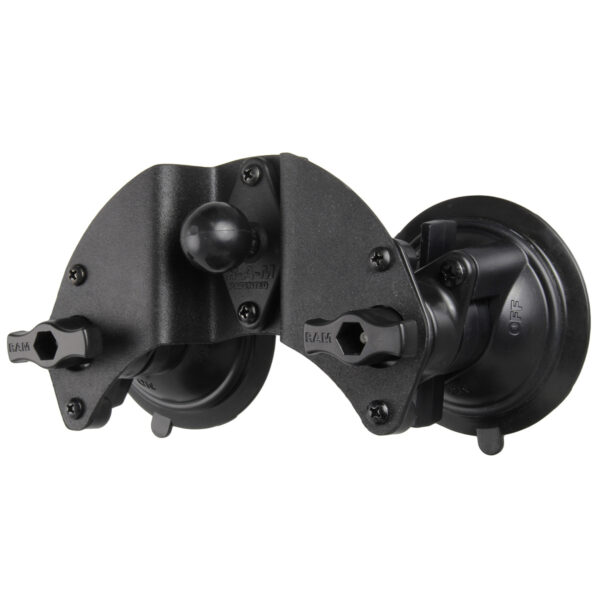 - RAM® Twist-Lock™ dual suction cup base is ideal for vehicle windshields and other nonporous surfaces; pivoting feature allows for attachment to curved surfaces