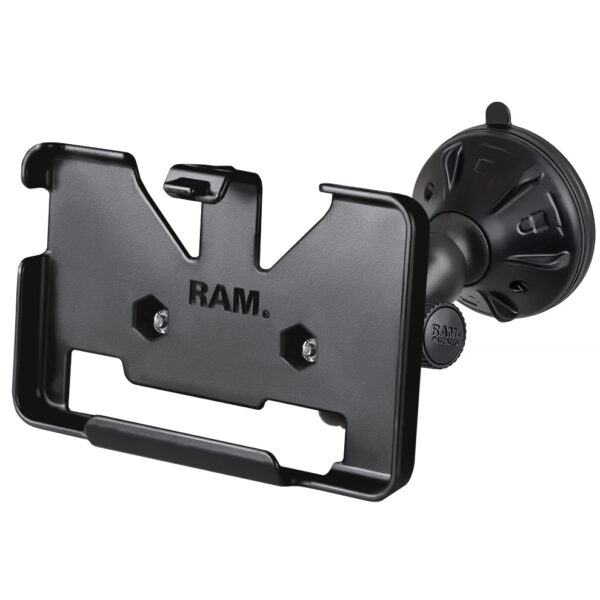 The RAP-B-166-2-GA34 consists of a 2.75″ twist lock suction cup base, double socket arm and high strength composite cradle. The suction cup, twist lock base is designed to have a strong hold on glass and non-porous plastic surfaces, including RAM adhesive disks. Designed into the mount is a 1″ diameter patented rubber ball and socket system with adjustment points at both ends of the socket arm; this with a twist of the arm knob, allows you to move the mount to your optimum viewing position.