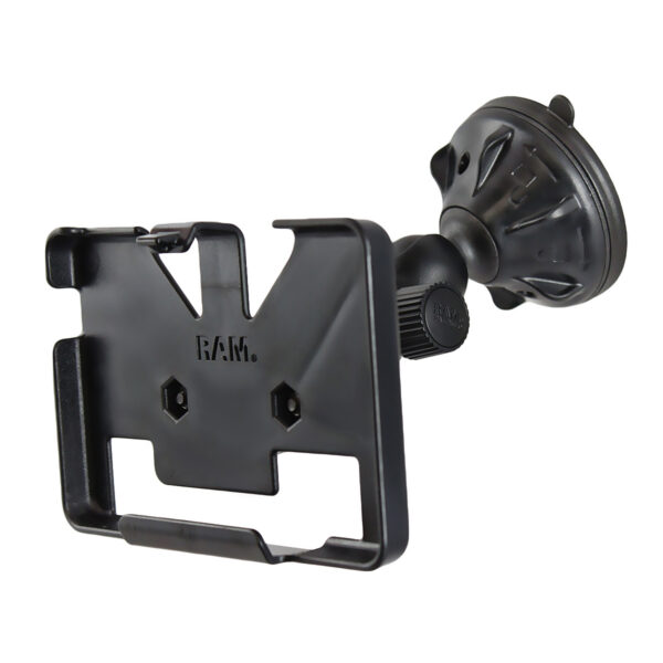 The RAP-B-166-2-GA35 consists of a 2.75″ twist lock suction cup base, double socket arm and high strength composite cradle. The suction cup, twist lock base is designed to have a strong hold on glass and non-porous plastic surfaces, including RAM adhesive disks. Designed into the mount is a 1″ diameter patented rubber ball and socket system with adjustment points at both ends of the socket arm; this with a twist of the arm knob, allows you to move the mount to your optimum viewing position.