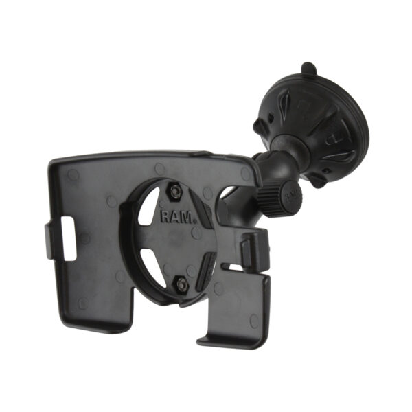 The RAP-B-166-2-TO10U consists of a 2.75″ twist lock suction cup base, double socket arm and high strength composite cradle. The suction cup, twist lock base is designed to have a strong hold on glass and non-porous plastic surfaces, including RAM adhesive disks. Designed into the mount is a 1″ diameter patented rubber ball and socket system with adjustment points at both ends of the socket arm; this with a twist of the arm knob, allows you to move the mount to your optimum viewing position.