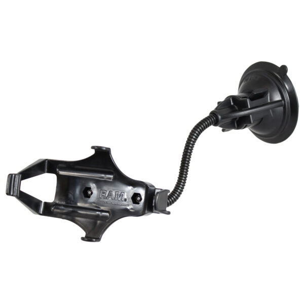 The RAP-105-6224-GA7U, flex arm suction cup mount, consists of a 3.3″ suction cup locking base, 6″ aluminum flex rod and custom high strength composite cradle for the Garmin GPSMAP. Once the suction base is securely mounted, you can move the cradle to your optimum viewing position with a simple bend of the arm. The suction cup base is designed to have an extra strong hold on any smooth non-porous surface. For best results mount the suction cup to glass or non-porous plastic surfaces.