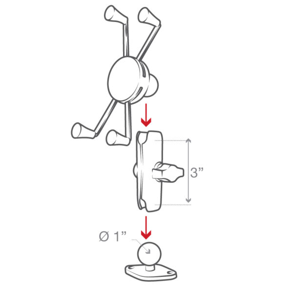 The popular spring-loaded RAM X-Grip phone holder features an ‘X’ design that expands and contracts to provide a perfect fit for your device even if it’s in a case. This large version of the RAM X-Grip fits phones ranging from 1.75″ to 4.5″ in width and keeps your device completely functional and accessible. The included diamond ball base features the industry-standard AMPS hole pattern, while RAM ball and socket technology allows for near-infinite adjustability to achieve the ideal viewing angle and helps to extend the life of your phone by providing shock and vibration damping. For outdoor applications like being used as a motorcycle phone mount the RAM X-Grip includes a device tether that is recommended for added security and peace of mind.