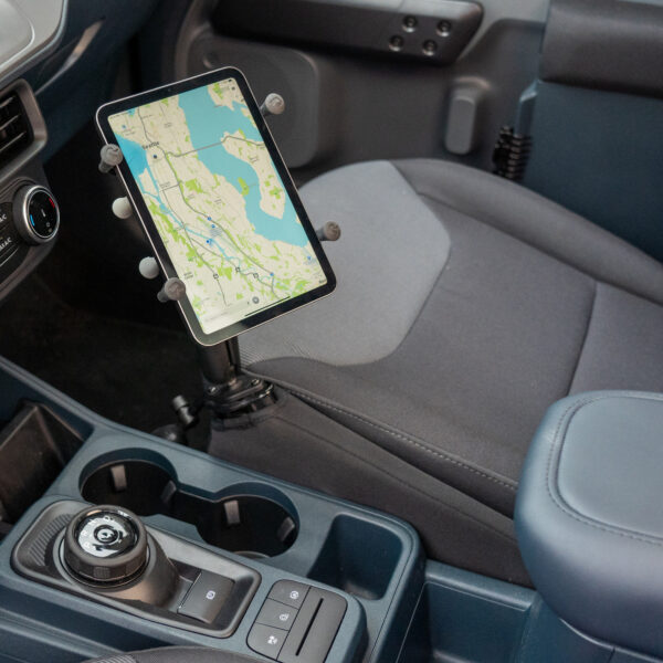 The RAM X-Grip Mount with RAM Tough-Wedge for 7″-8″ Tablets – Long Arm (RAM-B-407-C-UN8U) is a low-profile solution for vehicles with a center console, allowing easy access and operation of a small, 7-8″ tablet. Easily fit the wedge base in between the driver or passenger’s vehicle set and the center console and can be faced towards the front passengers or the backseat passengers. The RAM X-Grip for 7-8″ tablets features easy access grip knobs located on the back of the cradle for quick release of your tablet. The RAM ball and socket technology allows for near-infinite adjustability to achieve the ideal viewing angle while also extending the life of your tablet by providing shock and vibration damping. This version of the RAM X-Grip holder is compatible with tablets that will fit the dimensions listed below. It is important to verify the dimensions of device with its case, sleeve, or skin when determining the overall size.