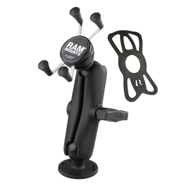 The RAM-138-UN7U consists of a round flat plate, double socket arm and universal X-Grip cradle. The mount is designed with a RAM 1.5″ diameter patented rubber ball and socket system that has adjustment points at both ends of the double socket arm; this allowing for almost infinite adjustment and perfect viewing angles. The included X-Grip cradle has a clean and clever four leg design that sports great holding power without hiding your phone behind foam pads and plastic. The spring loaded X-Grip cradle expands and contracts, allowing for a perfect custom fit of your cell phone. The perfect complement to the modern sleek interior of today’s vehicles, the RAM X-Grip is the cell phone cradle evolved.