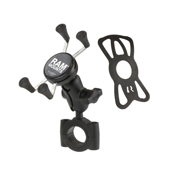 Take your mobile entertainment on the road with the new RAM Torque handlebar and rail mounting base. Weve paired a B-size 1 rubber ball base that accommodates bars 1 1/8″ to 1 in diameter with a short length arm and the dynamic X-Grip for phones. Sizing inserts are included to provide a snug fit and offer additional protection for the rail. The mount utilizes nylon-insert lock nuts to prevent loosening in high vibration environments. This low-profile mount is the perfect way to secure your personal electronics and small accessories in any high-vibration environment. The included X-Grip cradle has a clean and clever four leg design that sports great holding power without hiding your phone behind foam pads and plastic. The spring loaded X-Grip cradle expands and contracts, allowing for a perfect custom fit of your cell phone. The perfect complement to the modern sleek interior of today’s vehicles, the RAM X-Grip is the cell phone cradle evolved. The X-Grip includes a device tether recommended for outdoor applications. The cradle is compatible with handheld devices that will fit the dimensions listed below. It is important to verify the dimensions of your handheld device with a case/sleeve/skin when determining the overall size.