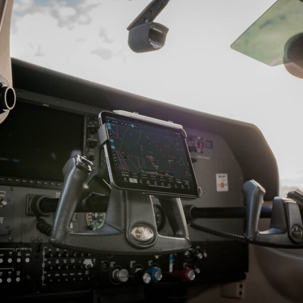 This ideal airplane yoke mount is designed specifically to hold an Apple iPad mini (A17 Pro) & mini 6, and consists of a yoke clamp base, B size medium length double socket arm and round 2.5″ base that contains the universal AMPS hole pattern to attach the holder. The yoke clamp base will fit rails in diameter from 0.625″ to a maximum of 1.25″. The 1″ rubber ball is at a right angle to the plane of the mount; when connected to a rail, the ball sits parallel to the rail. The mount is designed with a RAM 1″ diameter patented rubber ball and socket system that has adjustment points at both ends of the double socket arm, allowing for almost infinite adjustment and perfect viewing angles.