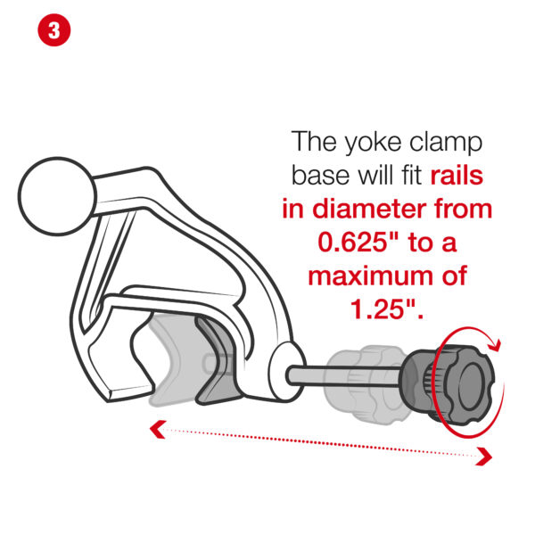 • Yoke clamp base fits rails from .625" to 1.25" in diameter for the ideal airplane mount